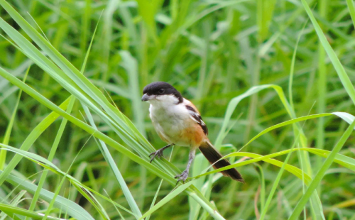ঘাসের ডগায় ঘাসফড়িং শিকারের আশায় বসে আছে ল্যাঞ্জা কসাই পাখি। টেংরা, শ্রীপুর, গাজীপুর, ৮ নভেম্বর